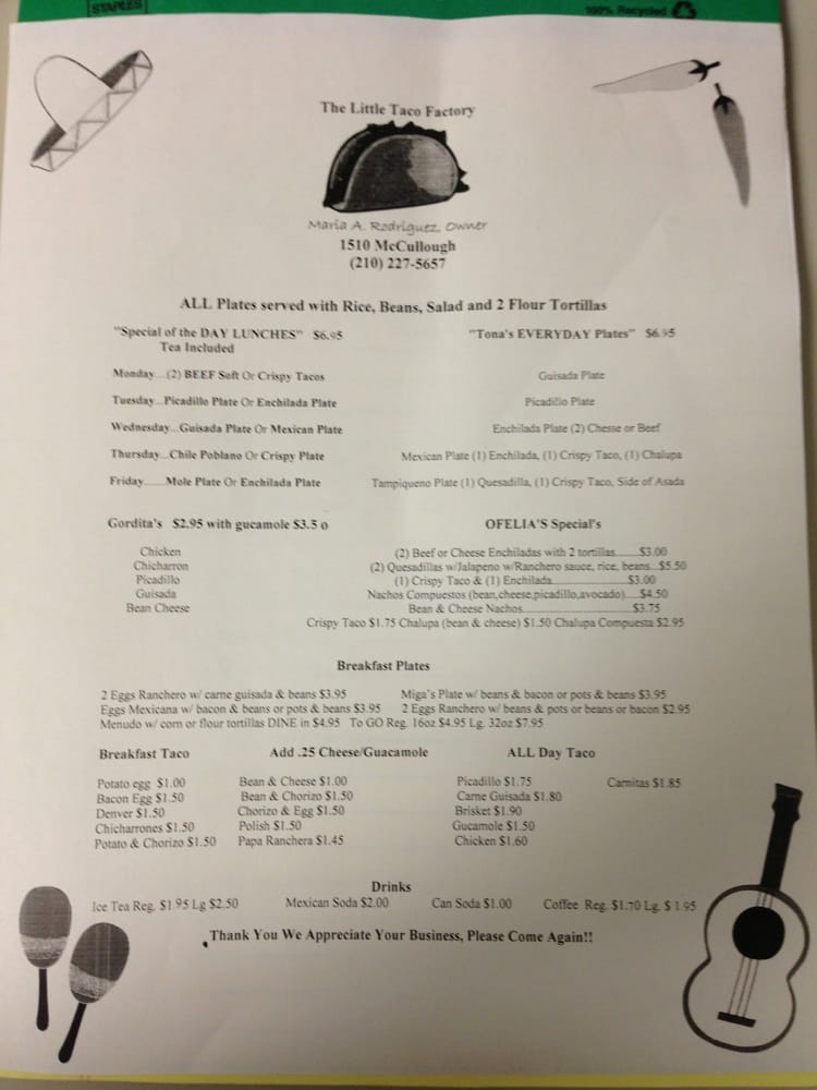 Little Taco Factory Mexican Restaurant Menu (Update 2025)